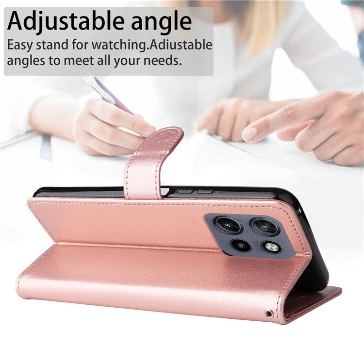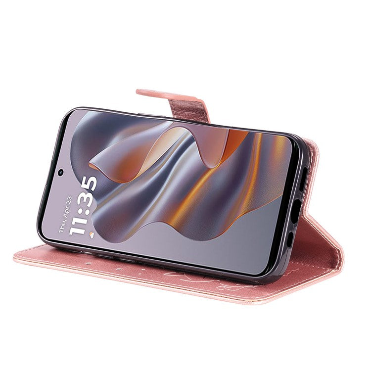 KT Imprinting Flower Series-4 For Motorola Edge 50 Neo 5G / Moto S50 5G / Thinkphone 25 5G Case Cat Bee Pattern Leather Phone Cover - Rose Gold