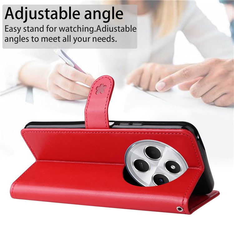 KT Imprinting Flower Series-4 For Xiaomi Poco C75 4G / Redmi 14R 5G / 14C 4G Case Cat Bee Pattern Leather Phone Cover - Red