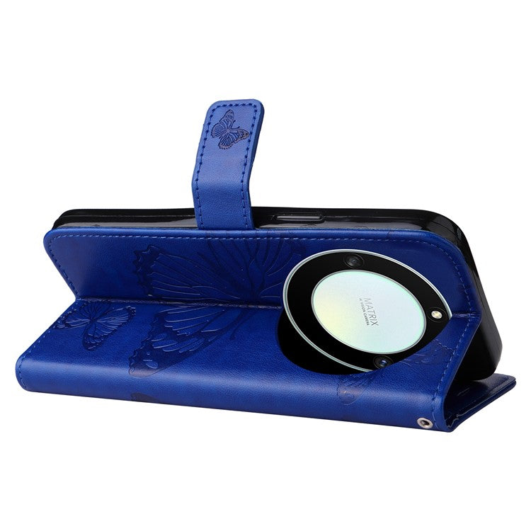 KT Imprinting Series-2 for Honor X40 5G / X9a 5G / Magic5 Lite 5G PU Leather Horizontal Stand Wallet Case Imprinted Butterfly Pattern Magnetic Clasp Protective Cover - Blue