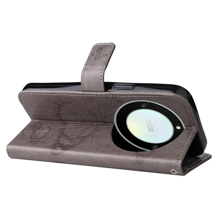 KT Imprinting Series-2 for Honor X40 5G / X9a 5G / Magic5 Lite 5G PU Leather Horizontal Stand Wallet Case Imprinted Butterfly Pattern Magnetic Clasp Protective Cover - Grey