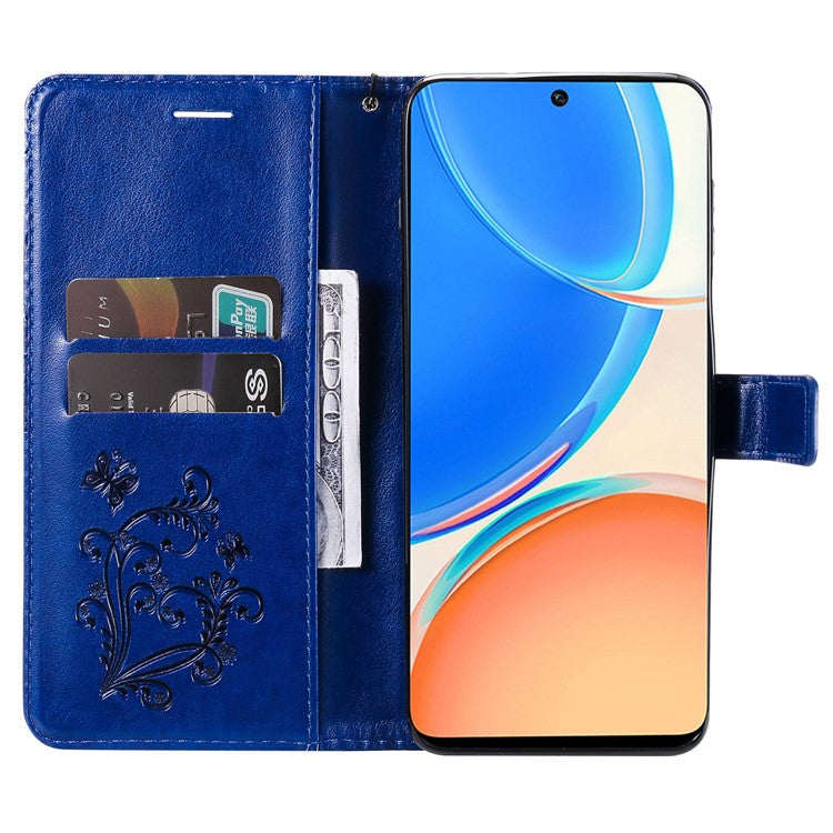KT Imprinting Series-2 for Honor X8 4G Phone Case Imprinted Butterfly Pattern Protective Wallet PU Leather Stand Cover with Strap - Blue