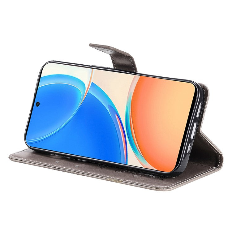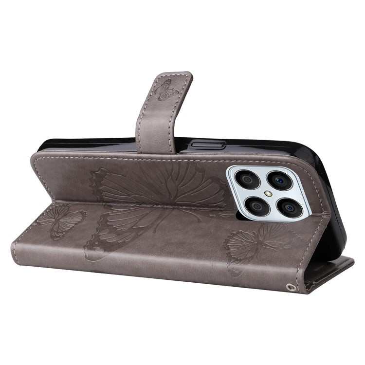 KT Imprinting Series-2 for Honor X8 4G Phone Case Imprinted Butterfly Pattern Protective Wallet PU Leather Stand Cover with Strap - Grey