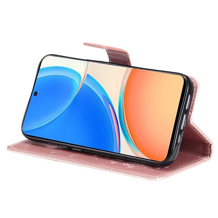 KT Imprinting Series-2 for Honor X8 4G Phone Case Imprinted Butterfly Pattern Protective Wallet PU Leather Stand Cover with Strap - Rose Gold