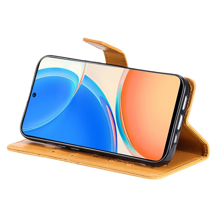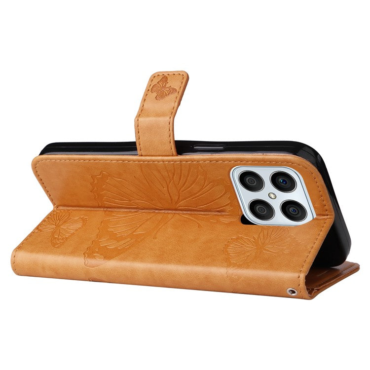 KT Imprinting Series-2 for Honor X8 4G Phone Case Imprinted Butterfly Pattern Protective Wallet PU Leather Stand Cover with Strap - Yellow