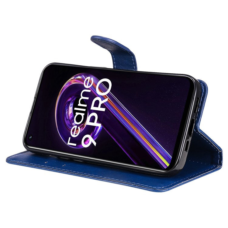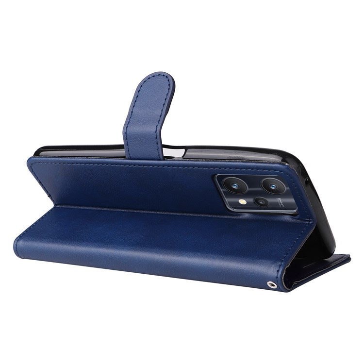 KT Leather Series-2 for Realme 9 Pro 5G / 9 5G / V25 PU Leather + TPU Shockproof Flip Shell Full Protection Wallet Purse Stand Cover with Wrist Strap - Blue