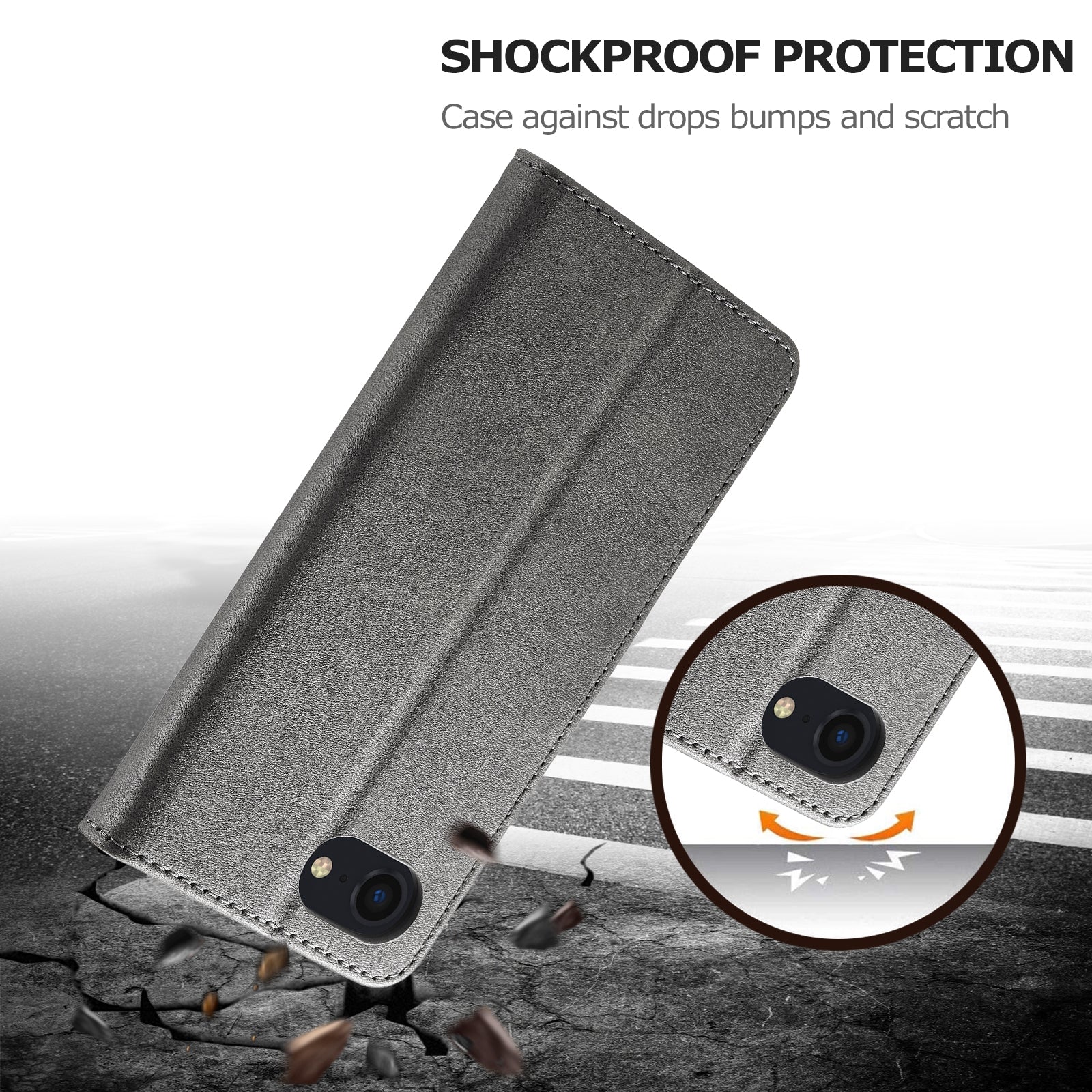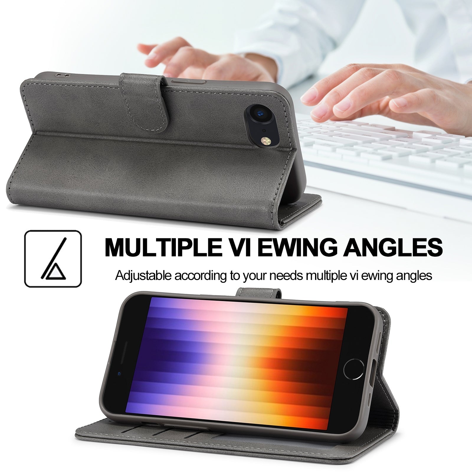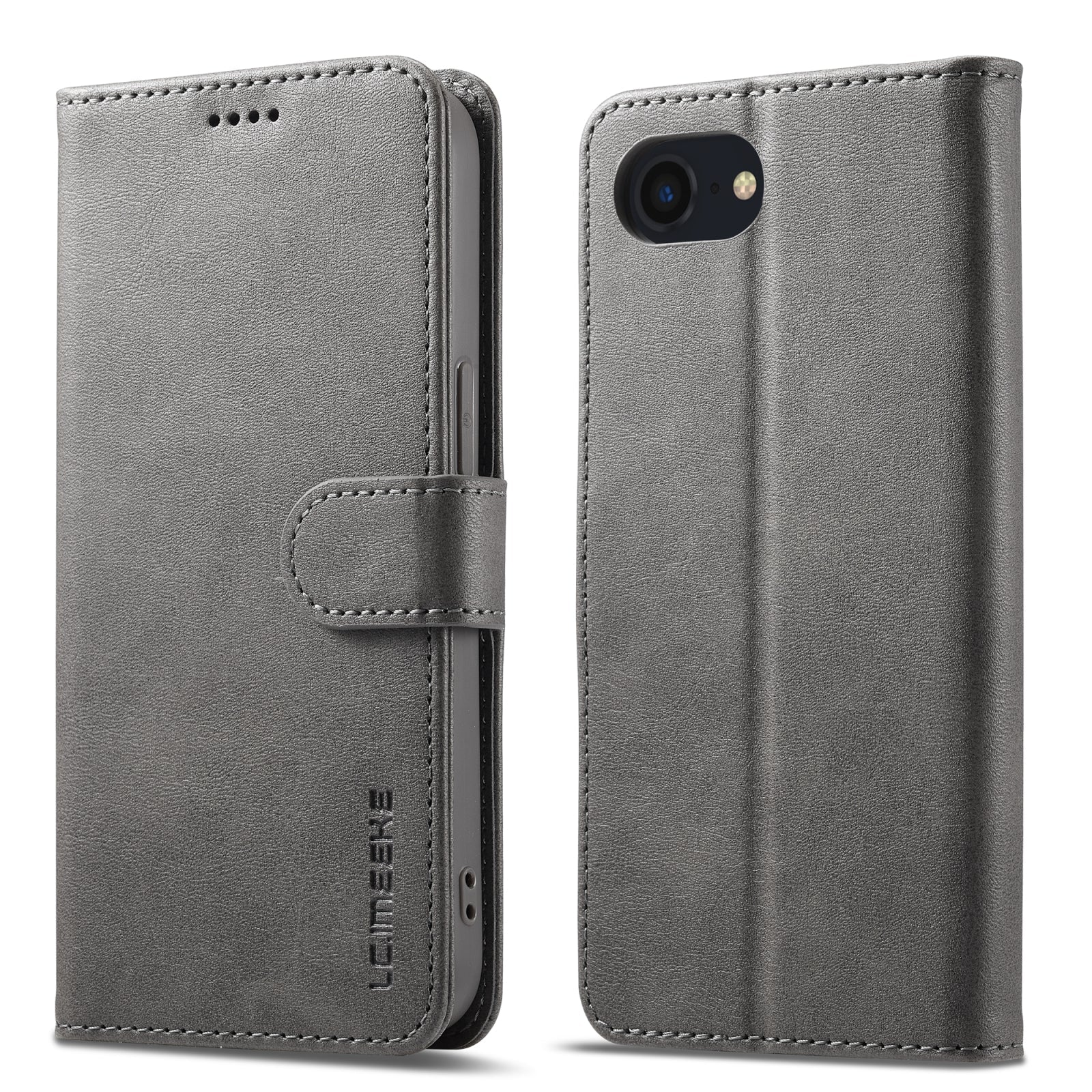 LC.IMEEKE Calf Texture Horizontal Flip Leather Case For iPhone 16e(Grey)