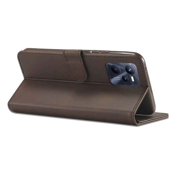 LC.IMEEKE for Realme C35 Textured PU Leather Flip Folio Anti-drop Stand Wallet Case Mobile Phone Case Cover - Brown