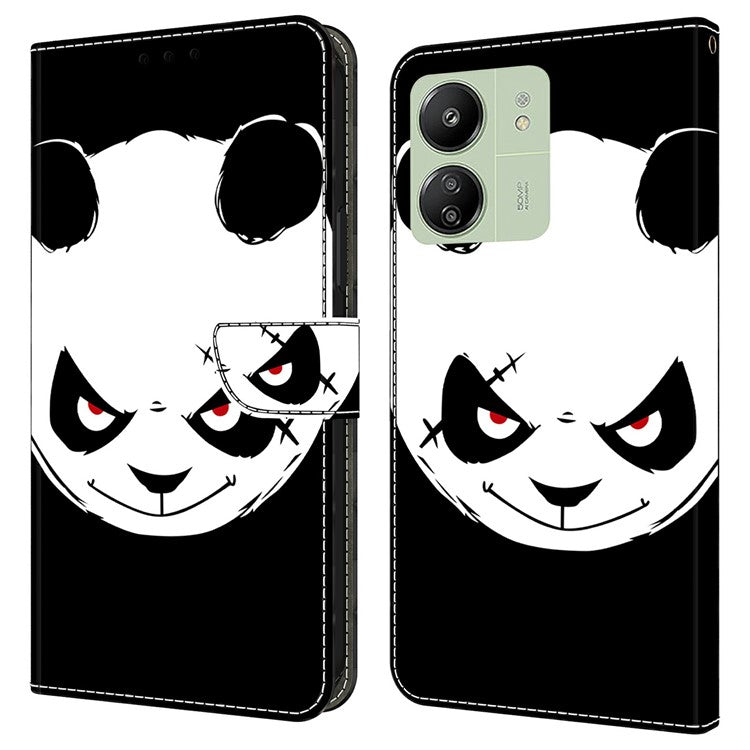 Leather Case For Xiaomi Redmi 14C 4G / Redmi 14R 5G / Poco C75 4G Pattern Printing Anti-Drop Flip Wallet Phone Cover - Angry Panda