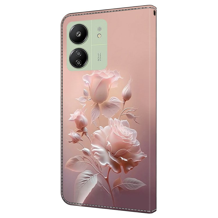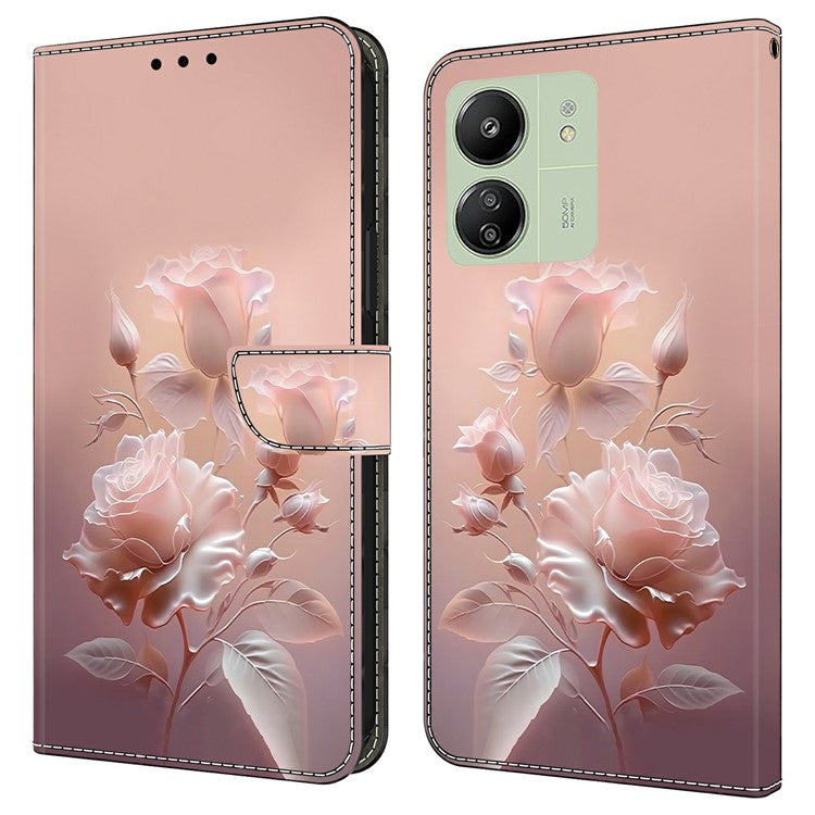 Leather Case For Xiaomi Redmi 14C 4G / Redmi 14R 5G / Poco C75 4G Pattern Printing Anti-Drop Flip Wallet Phone Cover - Ceramic Rose