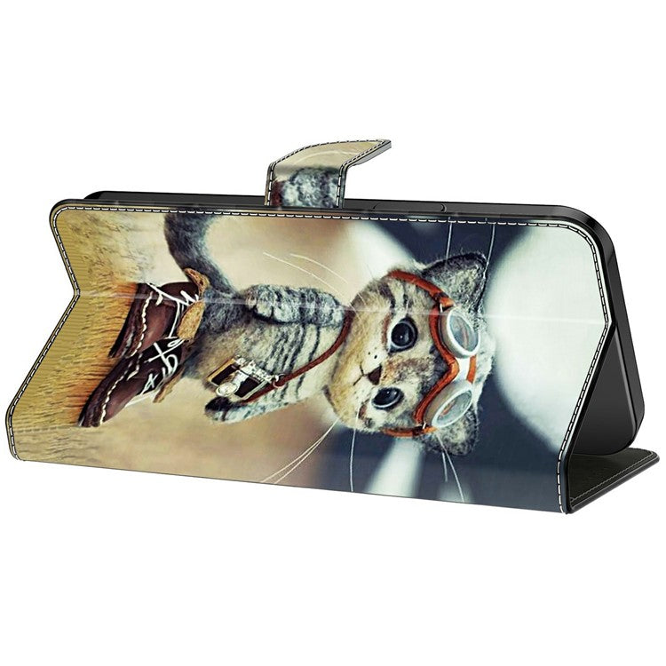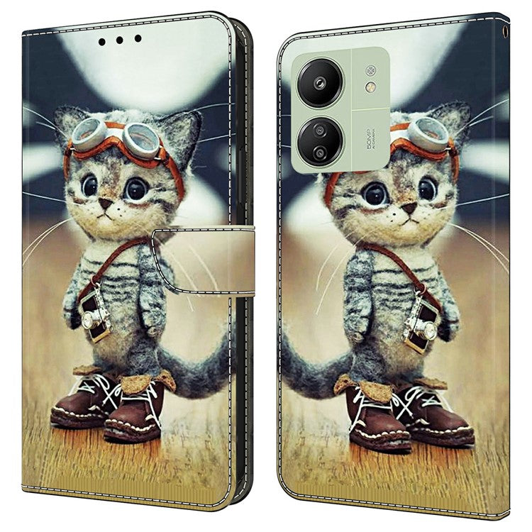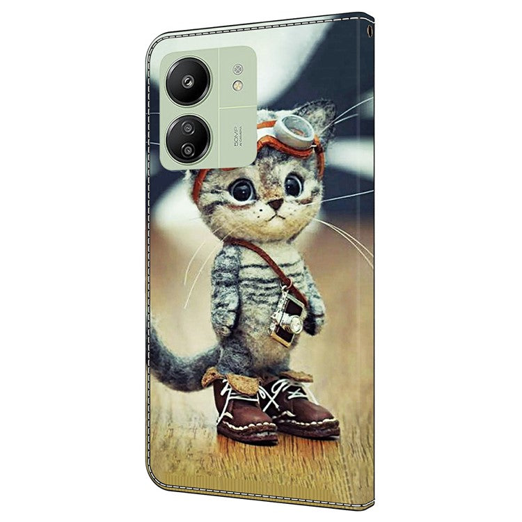 Leather Case For Xiaomi Redmi 14C 4G / Redmi 14R 5G / Poco C75 4G Pattern Printing Anti-Drop Flip Wallet Phone Cover - Naughty Cat