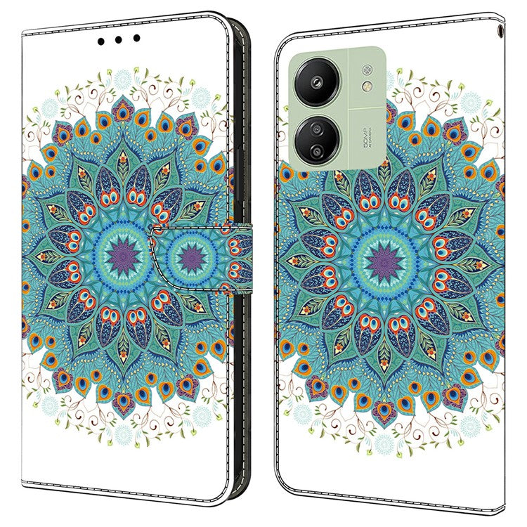 Leather Case For Xiaomi Redmi 14C 4G / Redmi 14R 5G / Poco C75 4G Pattern Printing Anti-Drop Flip Wallet Phone Cover - Peacock