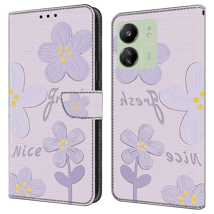 Leather Case For Xiaomi Redmi 14C 4G / Redmi 14R 5G / Poco C75 4G Pattern Printing Anti-Drop Flip Wallet Phone Cover - Purple Flowers