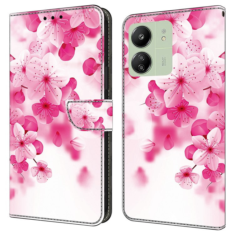 Leather Case For Xiaomi Redmi 14C 4G / Redmi 14R 5G / Poco C75 4G Pattern Printing Anti-Drop Flip Wallet Phone Cover - Red Flowers
