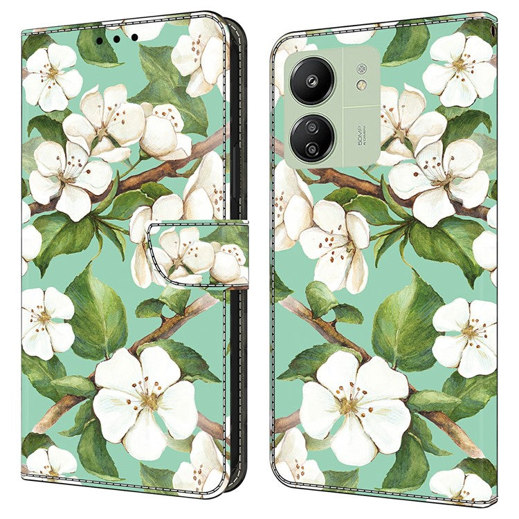 Leather Case For Xiaomi Redmi 14C 4G / Redmi 14R 5G / Poco C75 4G Pattern Printing Anti-Drop Flip Wallet Phone Cover - Watercolor Flowers