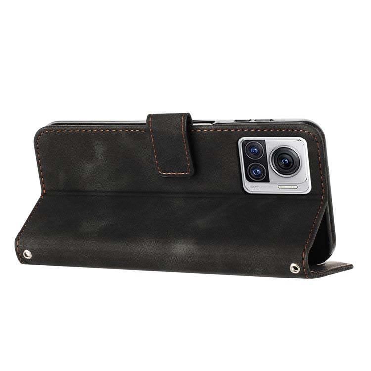 Leather Cover for Motorola Moto X30 Pro 5G / Edge 30 Ultra 5G , Triangle Imprint Wallet Stand Anti-drop Phone Case with Strap - Black