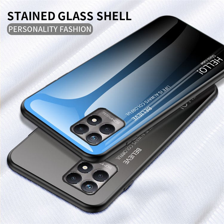 Light Thin Anti-fingerprint Gradient Color Tempered Glass Hybrid Cover Phone Case for Realme 8i/Narzo 50 4G - Gradient Pink Purple