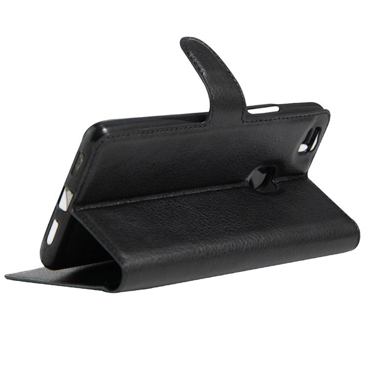 Litchi Grain Folio Flip Leather Wallet Case for Huawei P9 Lite - Black