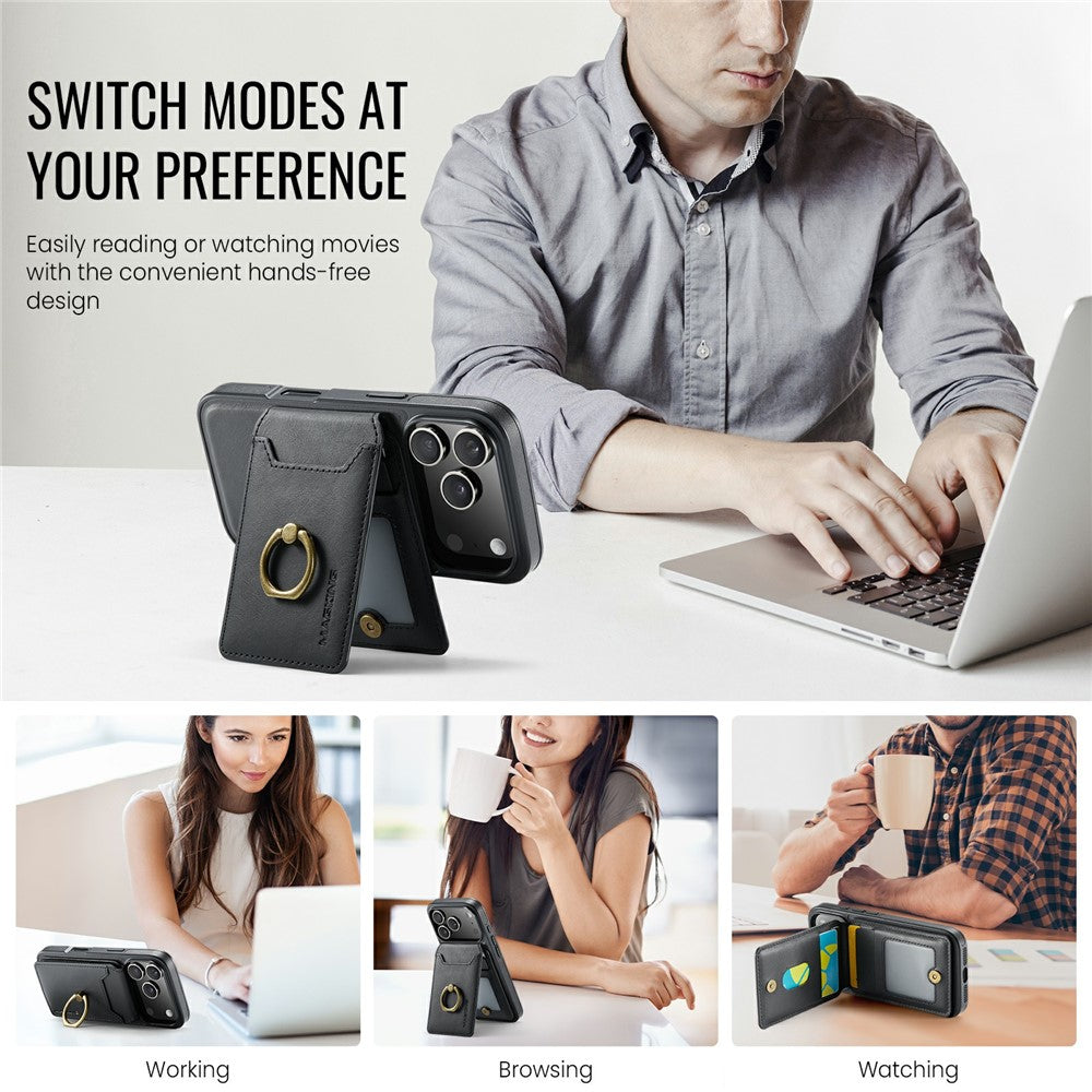 MAGKING K1 Series For iPhone 17 Pro Max Magnetic Case PC + TPU + PU Phone Cover with Card Holder - Black
