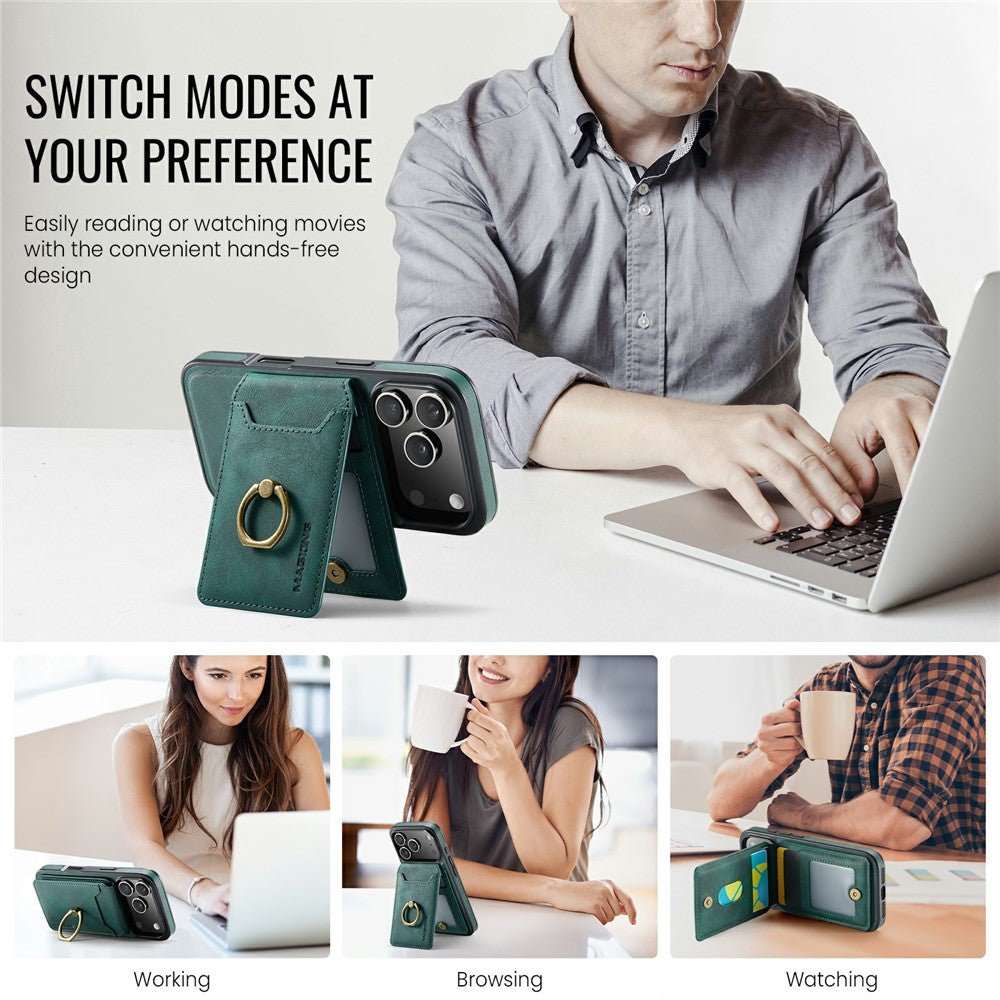 - ?Card Holder & Kickstand?Includes a detachable card holder that can store your cards and doubles as a kickstand for hands-free viewing, and also with a ring finger kickstand, adding both functionality and convenience to your phone case