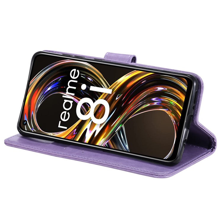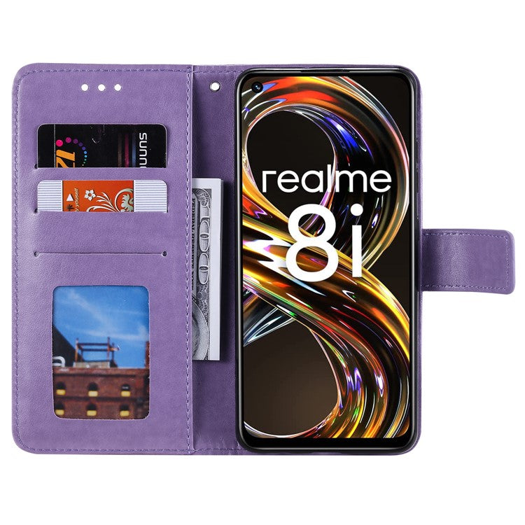 Mandala Flower Imprinted All-round Shockproof Stand Wallet Leather Phone Case Shell for Realme 8i/Narzo 50 4G - Purple