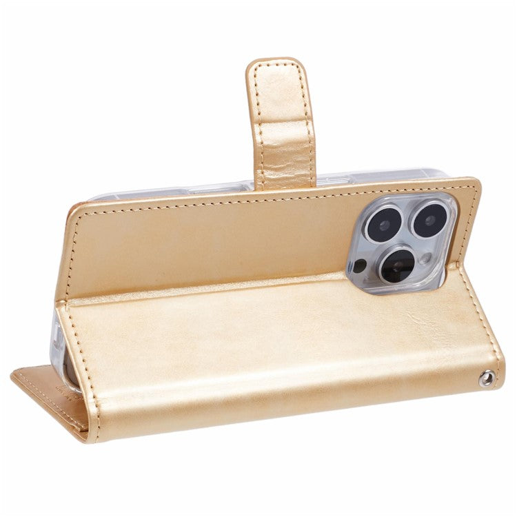 MERCURY GOOSPERY Blue Moon For iPhone 16 Pro Case Stand Full Protection Leather Phone Cover - Gold