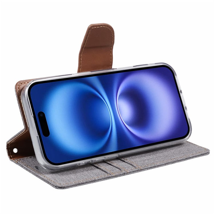 MERCURY GOOSPERY For iPhone 16 Case Canvas Texture Leather Wallet Phone Cover - Grey
