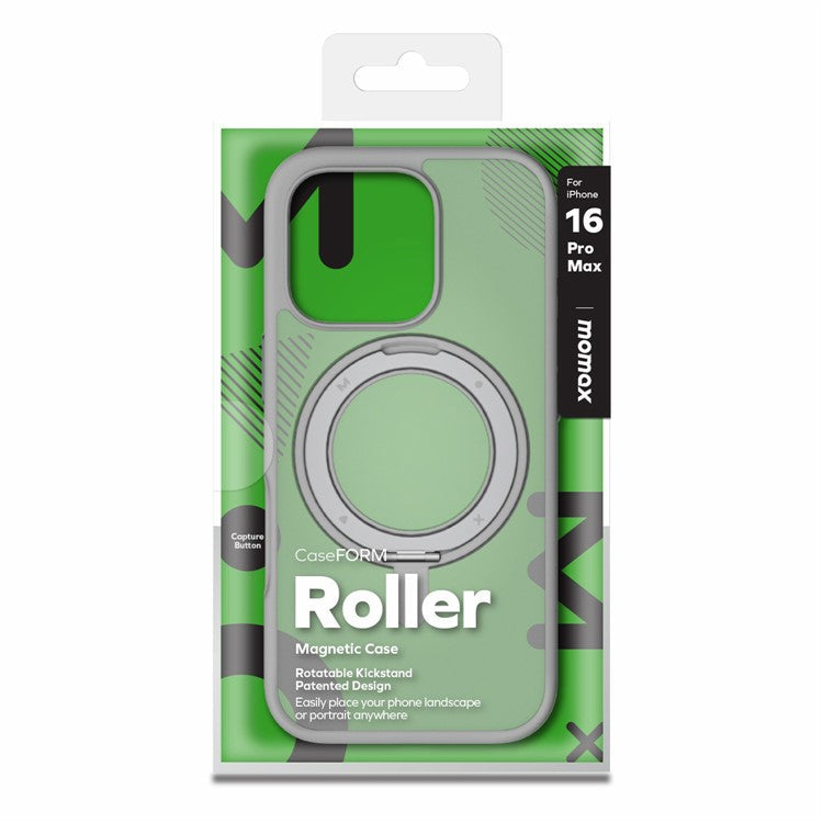 MOMAX MRAP24 For iPhone 16 Pro Magnetic Case TPU+PC Ring Kickstand Phone Cover - Light Grey