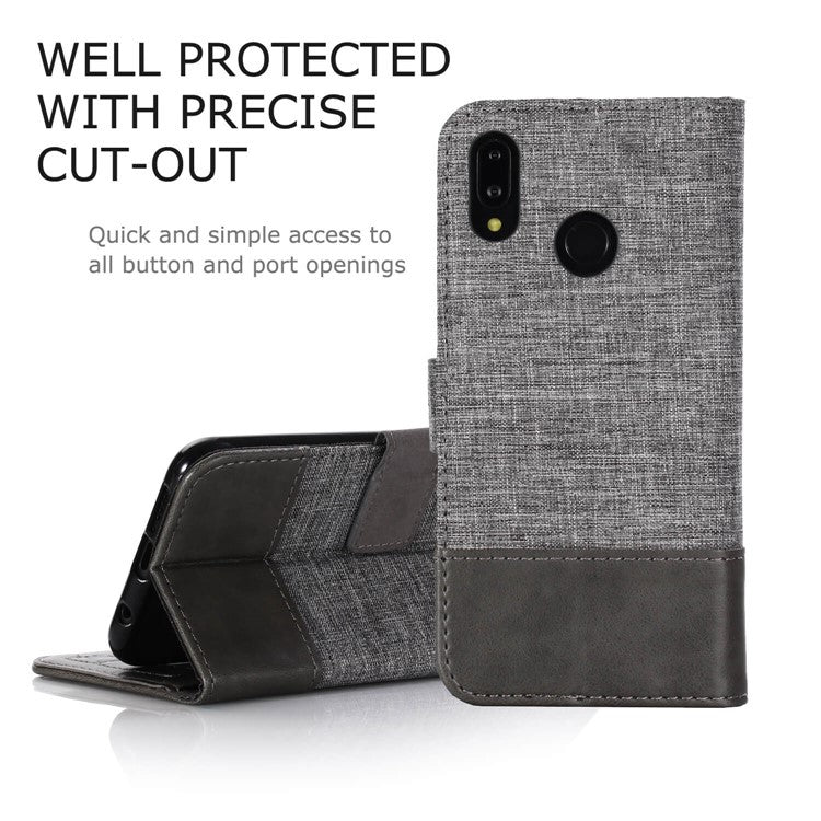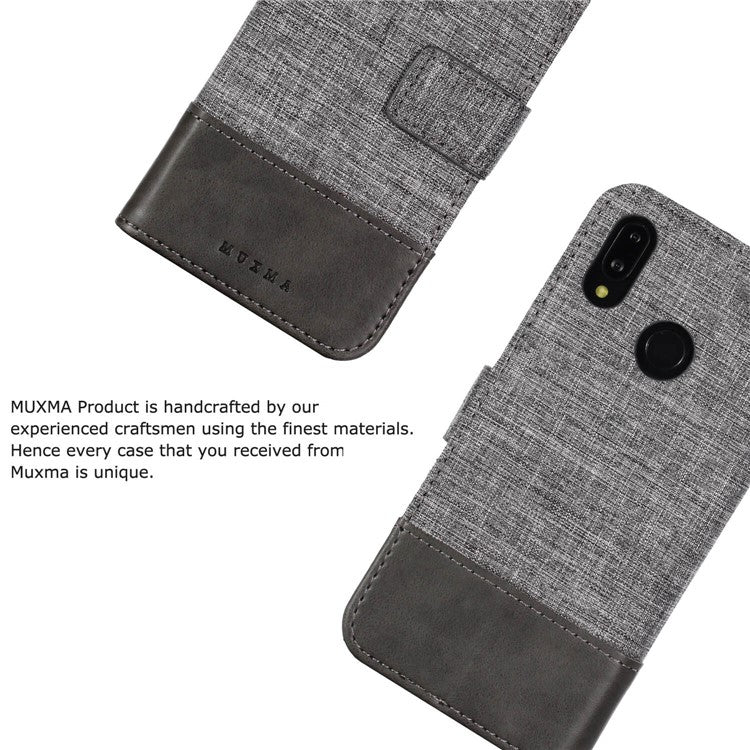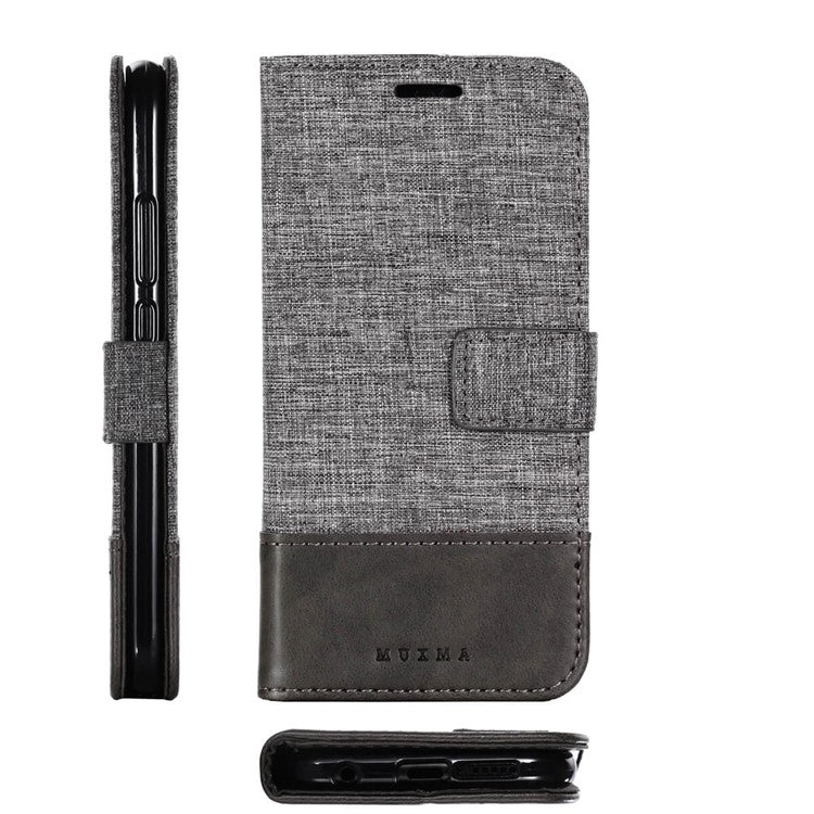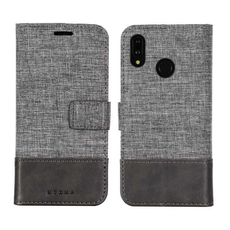 MUXMA Leather Canvas Splicing Stand Mobile Cover for Huawei P20 Lite/Nova 3e - Grey
