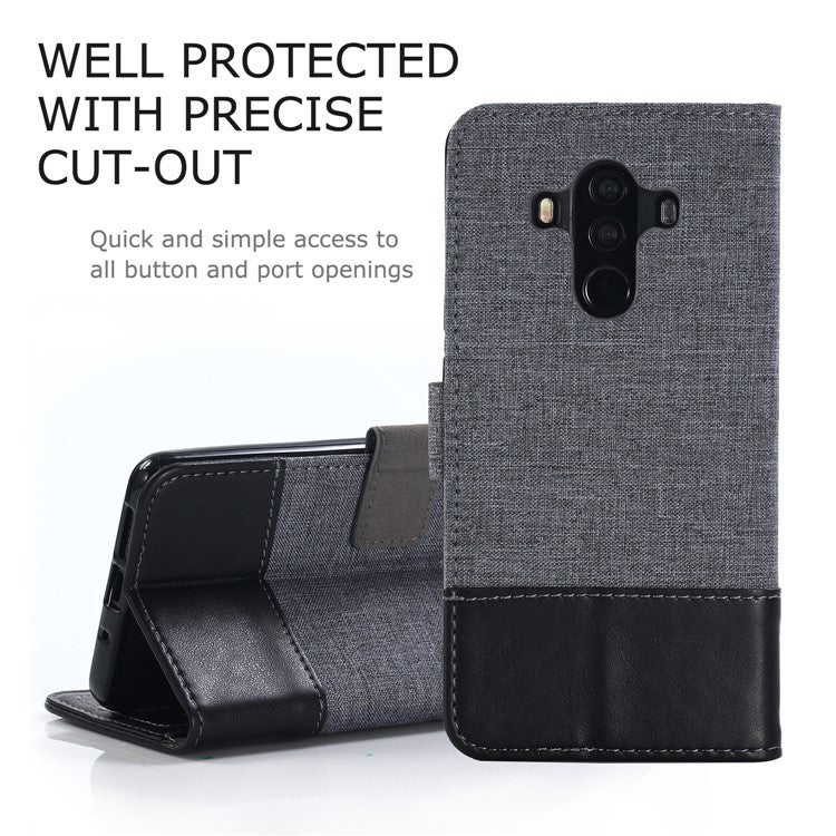 MUXMA Splicing PU Leather Canvas Wallet Phone Cover for Huawei Mate 10 Pro - Black