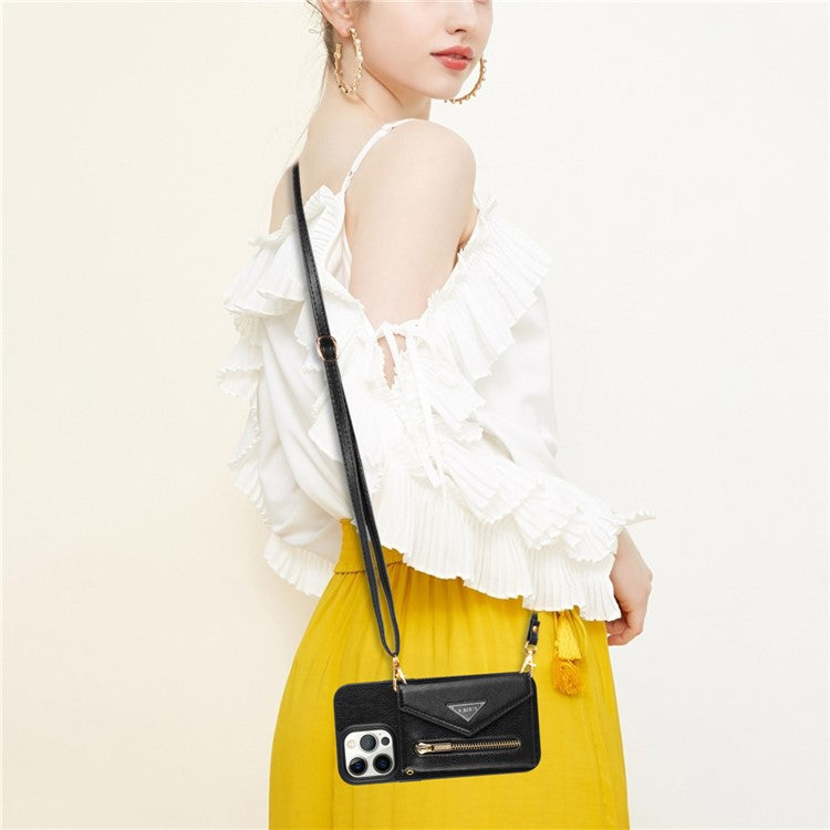 N.BEKUS For iPhone 16 Pro Case Card Slot Zipper Wallet Leather Phone Cover with Shoulder Strap - Black