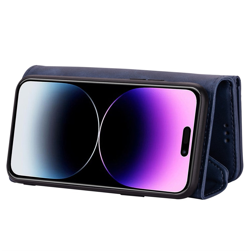 N.BEKUS For iPhone 17 Pro Max Cases Skin-Touch Leather Wallet Phone Cover with Straps - Blue