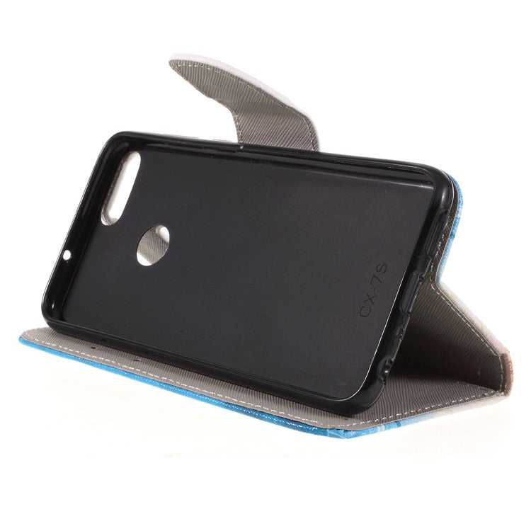 Pattern Printing Cross Texture Stand Wallet Leather Case for Huawei P Smart / Enjoy 7S - Blue and Gold Butterfly