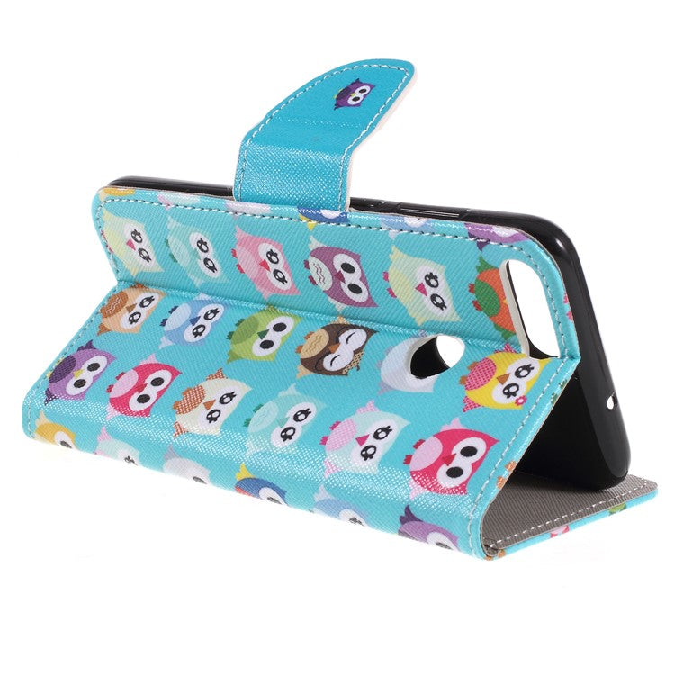 Pattern Printing Cross Texture Stand Wallet Leather Folio Protection Shell for Huawei P Smart / Enjoy 7S - Owl Family Green Background
