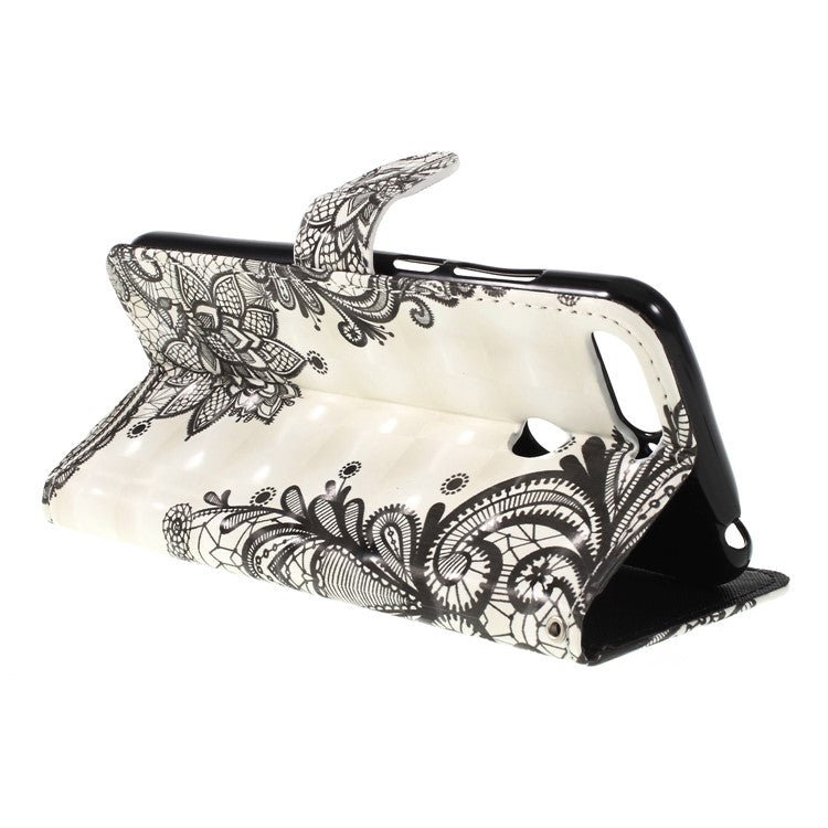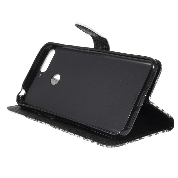 Pattern Printing Leather Wallet Case Phone Shell for Huawei Y6 (2018)/Honor 7A (without Fingerprint Sensor) - Black Flower