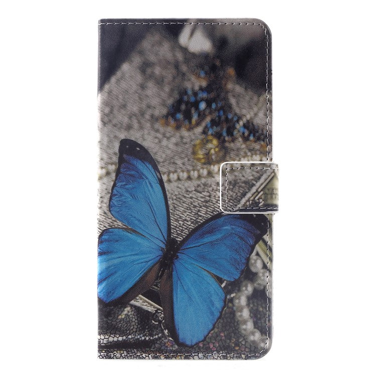 Pattern Printing PU Leather Magnetic Wallet Stand Protective Shell for Huawei Mate 20 Pro - Blue Butterfly