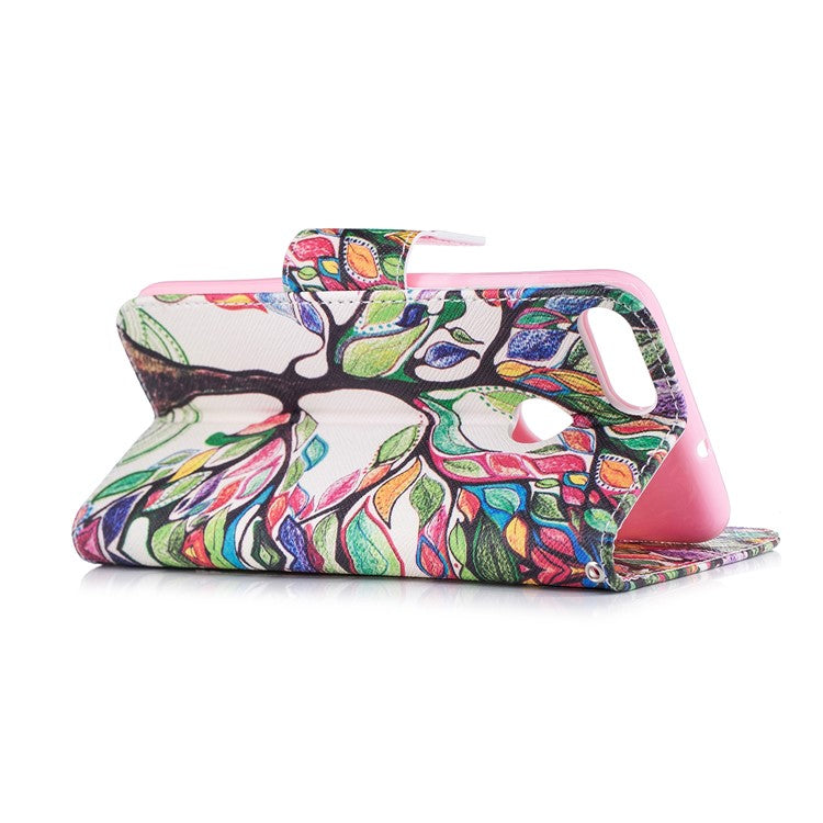 Pattern Printing PU Leather Wallet Stand Case for Huawei P Smart/Enjoy 7S - Colorized Tree