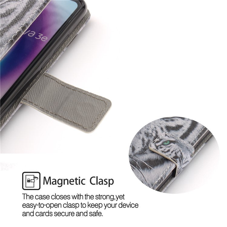 Patterned Wallet Stand PU Leather Case for Huawei P20 Lite / Nova 3e - Tiger with Green Eye