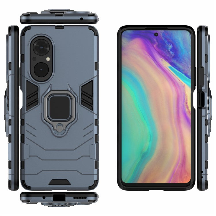 PC + TPU Ring Holder Kickstand Design Shell Cell Phone Hybrid Case Cover for Honor 50 SE - Blue