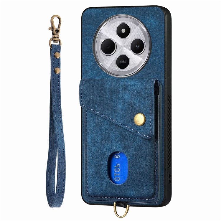 Phone Case For Xiaomi Redmi 14C 4G / 14R 5G / Poco C75 4G Leather+TPU Back Cover with Card Slot Kickstand - Blue