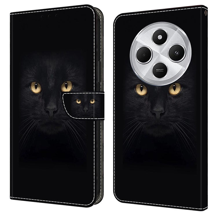 Phone Case For Xiaomi Redmi 14C 4G / 14R 5G / Poco C75 4G Magnetic Clasp 3D Pattern Leather Wallet Phone Cover - Black Cat