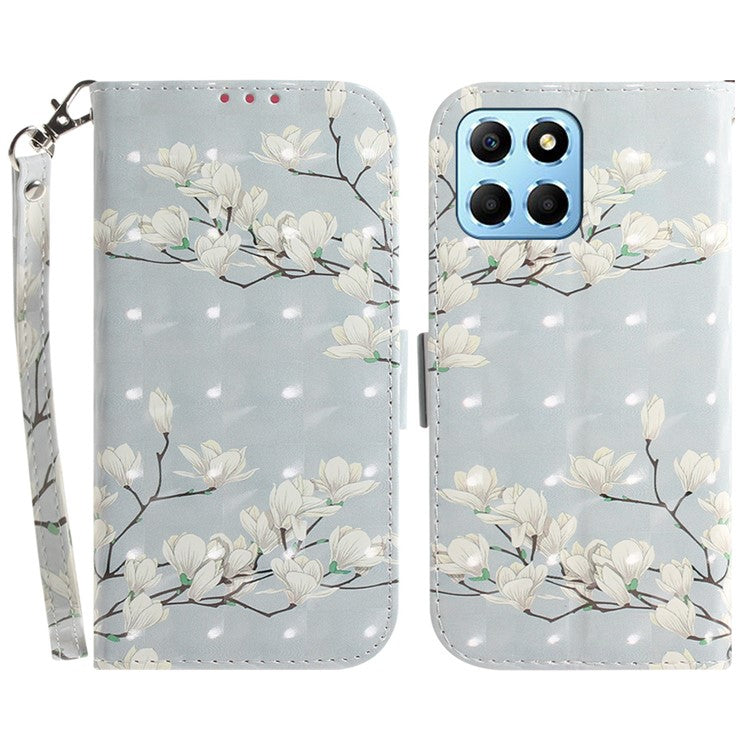 PU Leather Case for Honor X8 5G Protective Shell Wallet Phone Flip Cover with Strap - Magnolia