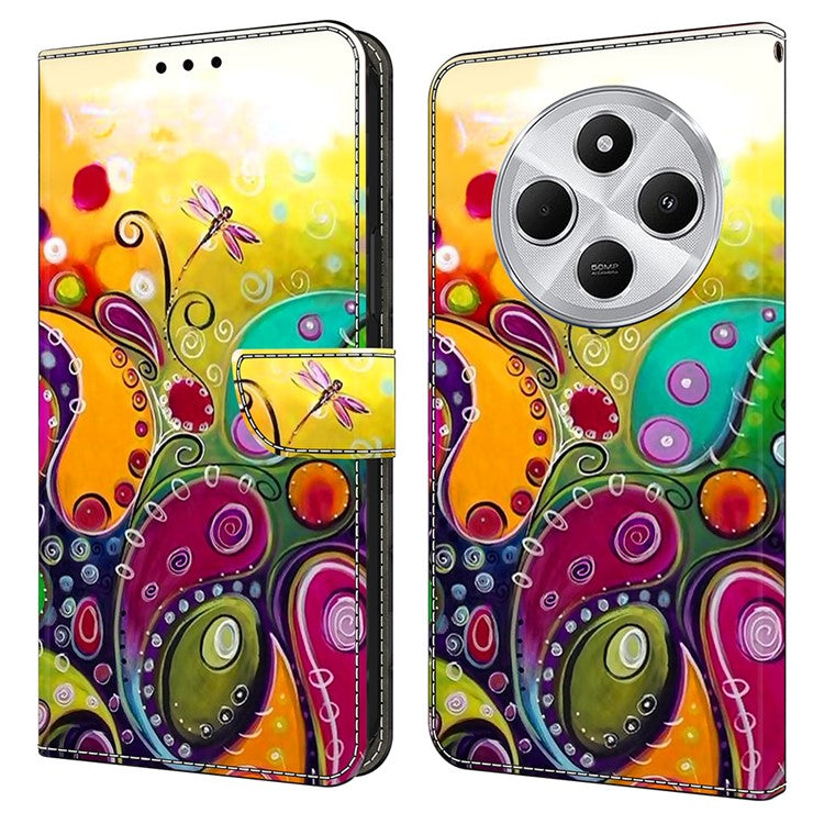 PU Leather Case For Xiaomi Redmi 14C 4G / 14R 5G / Poco C75 4G Wallet Phone Cover with Stand - Colorful Flower