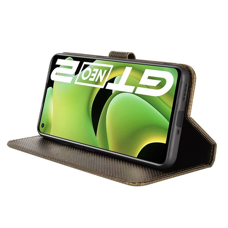PU Leather Cover for Realme GT Neo2 5G/GT Neo 3T 5G/GT2 Anti-scratch Diamond Texture Wallet Stand Magnetic Full Protection Phone Case - Brown