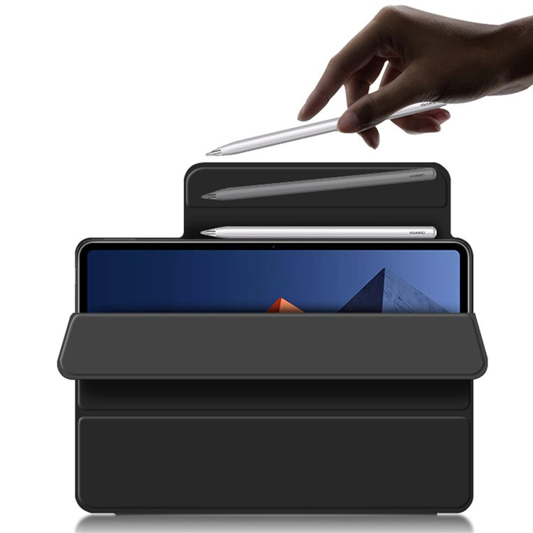 PU Leather Tri-fold Stand Magnetic Closure Tablet Case Cover for Huawei MateBook E 2022 - Black