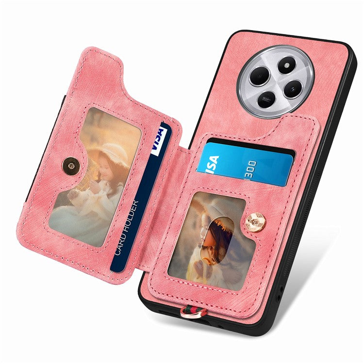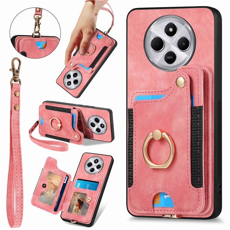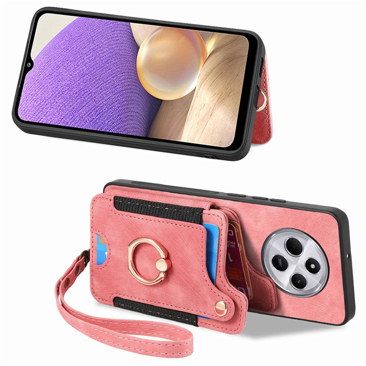 RFID Blocking Case For Xiaomi Redmi 14C 4G / 14R 5G / Poco C75 4G Handbag Leather+TPU Phone Cover Card Slots, Ring Holder - Pink