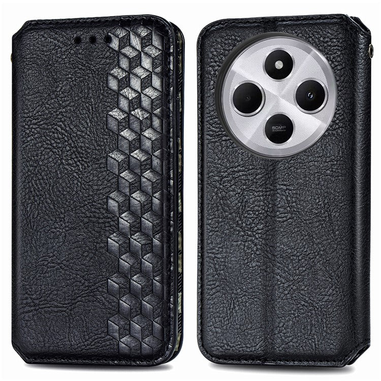 Rhombus Imprint for Xiaomi Redmi 14C 4G / 14R 5G / Poco C75 4G Case PU Leather Wallet Phone Cover - Black