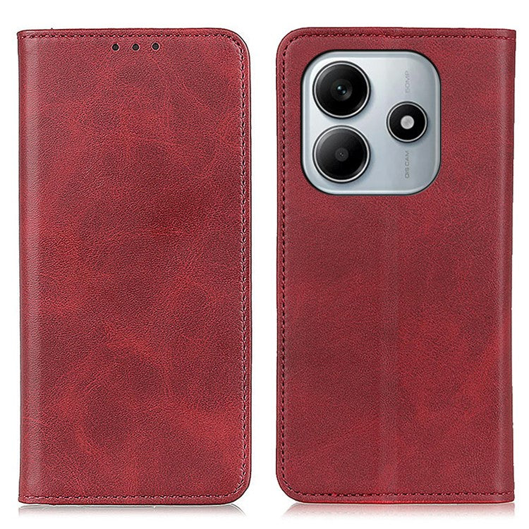 Split Leather Case for Xiaomi Redmi Note 14 5G Flip Wallet Phone Cover - Red