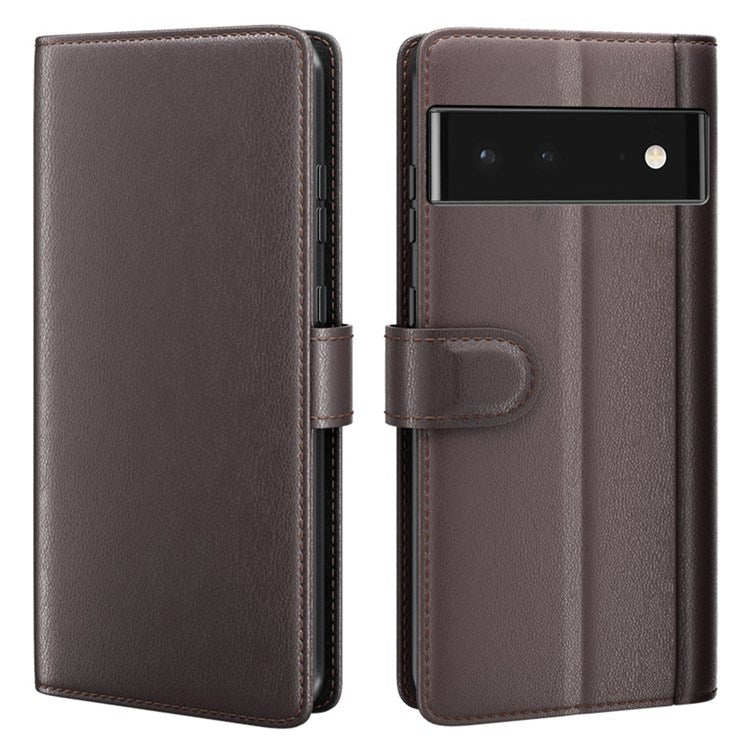 Split Leather Genuine Leather Case for Google Pixel 6, Wallet Stand Folio Flip Protective Cover - Brown