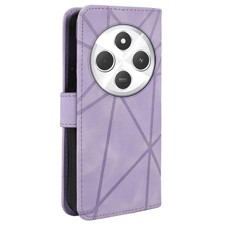 Stand Phone Case for Xiaomi Poco C75 4G / Redmi 14R 5G / 14C 4G Line Pattern Leather Cover - Purple