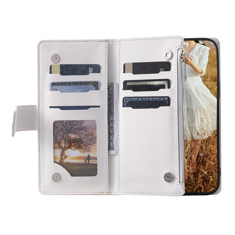 Style 005 For Google Pixel 9 / 9 Pro Wallet Case Rhombus PU Leather Zipper Phone Cover - White